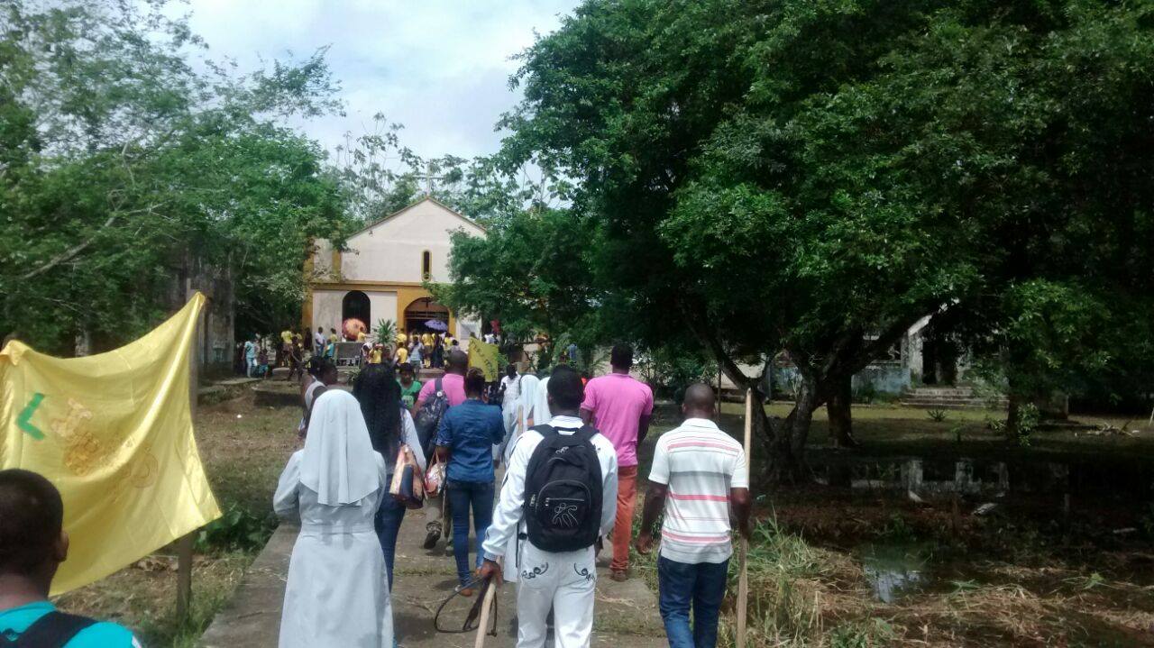 A la salida de la misa, Lucero buscaba con emoción a Monseñor García, pues en el proceso de memoria que lleva a cabo la comunidad está estipulada la creación del santuario en el lugar de la masacre. No sabía a quién dirigirse, en un momento muy corto supo que el asunto del santuario no se discutiría, por lo menos en ese día, pues Monseñor García salió de prisa en una panga hacia Quibdó y nadie más supo decirle qué pasaría algo al respecto.